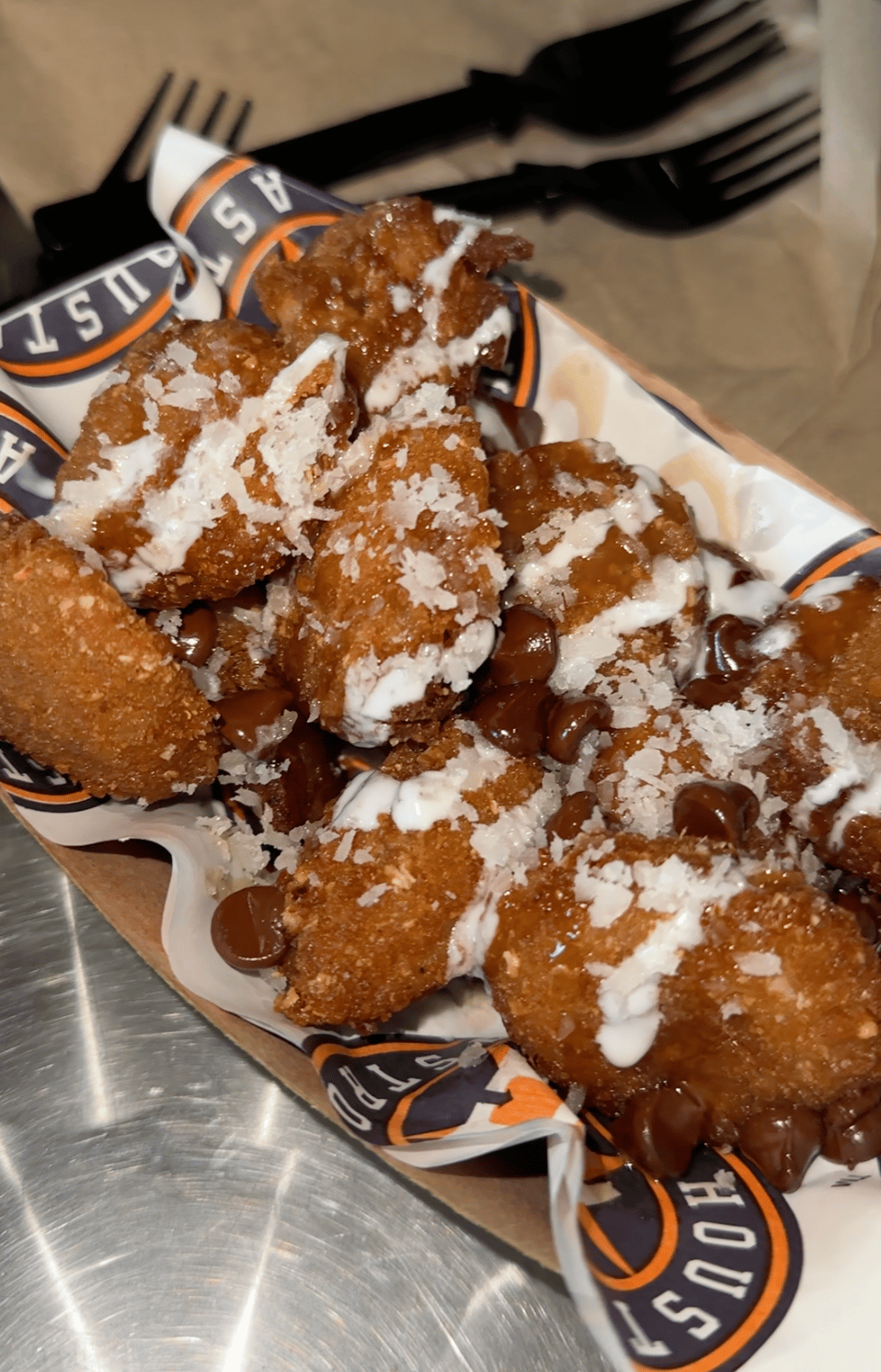 Daikin Park is not getting the recognition it deserves relative to other MLB stadiums when it comes to food. I’ll keep banging that drum. Mostly savory stuff but there’s one dessert that particularly stood out to me. They call them Horchachos: deep fried horchata creme balls, coated in cinnamon-sugar, topped with caramel and white chocolate sauce, garnished with chocolate chips and toasted coconut, and served with sweet plantains. If that doesn’t get you a little excited in the pants, we can’t be friends, respectfully speaking.