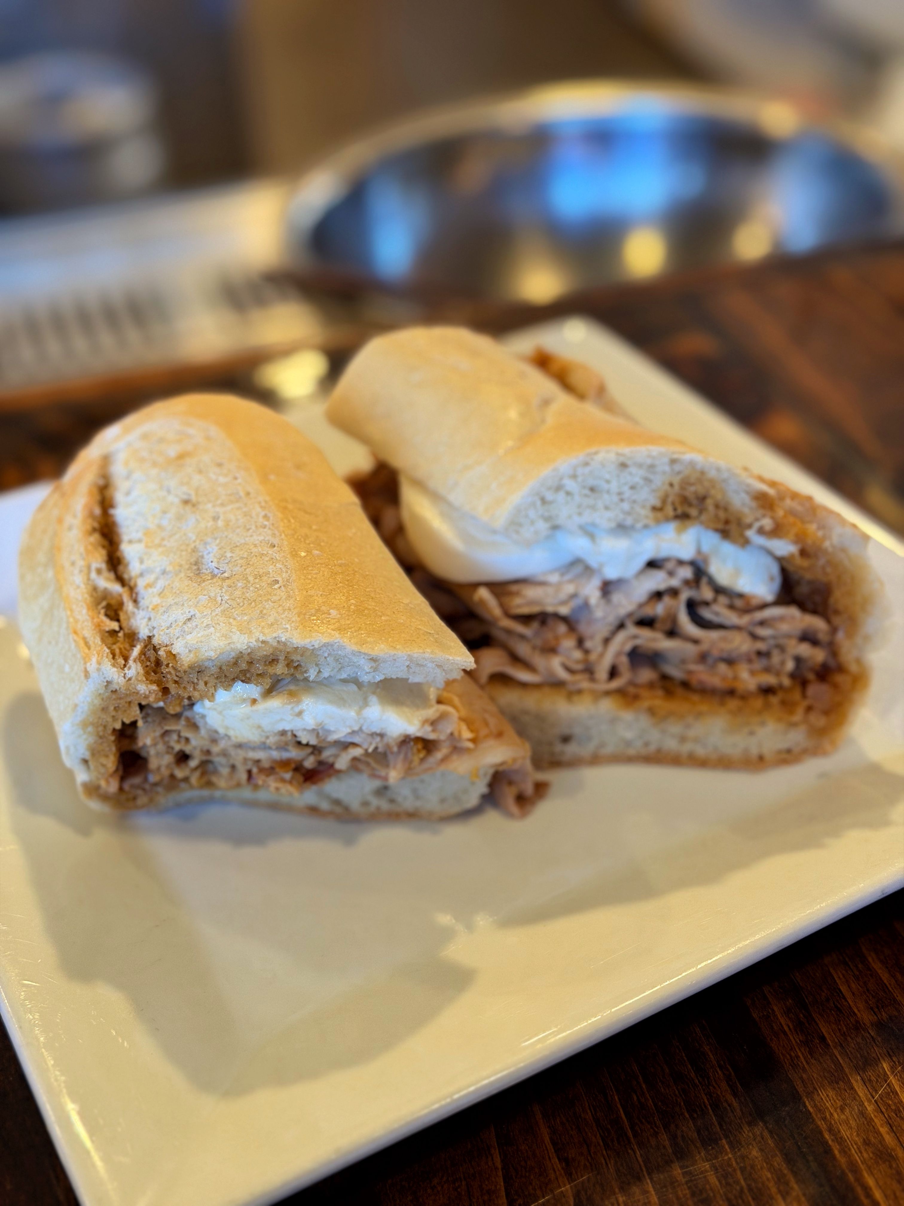 Annabella’s House of Mozzarella to be more specific. And yes, their fresh mutz is off the charts. It’s a wild place with the menu to match, but I keep it simple. Their Pork & Mozzarella sandwich is one of my favorite sandwiches of all time. They offer it only on Tuesdays and Saturdays (great sign), and it needs no additions. Savory roast pork, the freshest fresh mutz, a little au jus from the pork, and the perfect slightly crusty bread to soak up the juices and hold the sandwich together. I cannot recommend it more.