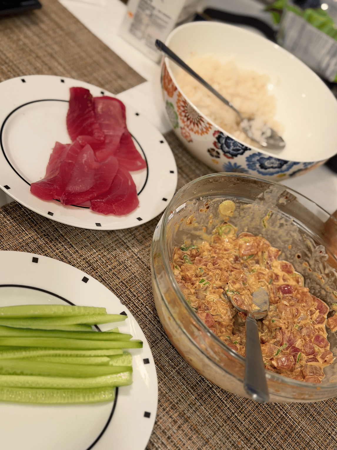 I’ve got a buddy who is a wholesale seafood distributor, so when he calls and says he’s got sushi grade tuna with my name on it, I’m in. Spicy tuna, sushi rice, the proper accoutrement, DIY hand rolls. About as satisfying of an at-home meal as it gets if you ask me.